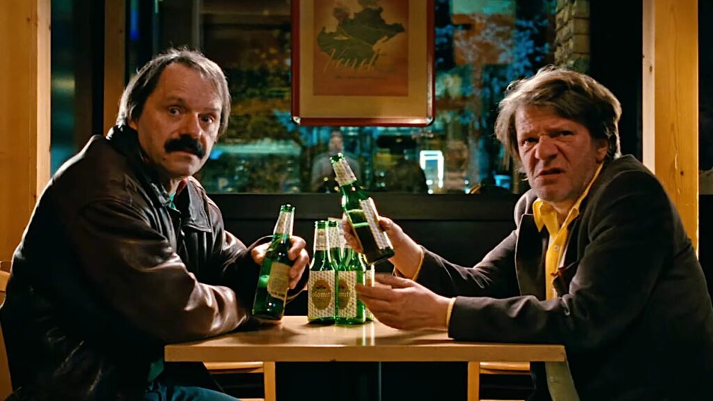 In realtà il film inizia anni prima, in un parcheggio di una fabbrica di occhiali del bellunese in cui un venetissimo imprenditore scende dal suo elicottero per pochi minuti in vista del pensionamento del suo più longevo dipendente. Incontriamo il signor Sossai, questo ironicamente il suo nome, come fidatissimo operaio, encomiabile padre di famiglia sposato con Genni e lo ritroveremo come morto vivente davanti ad una slot machine di un bar di paese da cui non può staccare lo sguardo. Forse si è giocato tutto, anche la casa, ma al polso sfoggia ancora il Rolex regalo dell’imprenditore, vestigia di un mondo perduto, degli anni d’oro del Veneto locomotiva d’Italia che hanno permesso al Genio di arricchirsi prima e di essere condannato per associazione a delinquere poi.